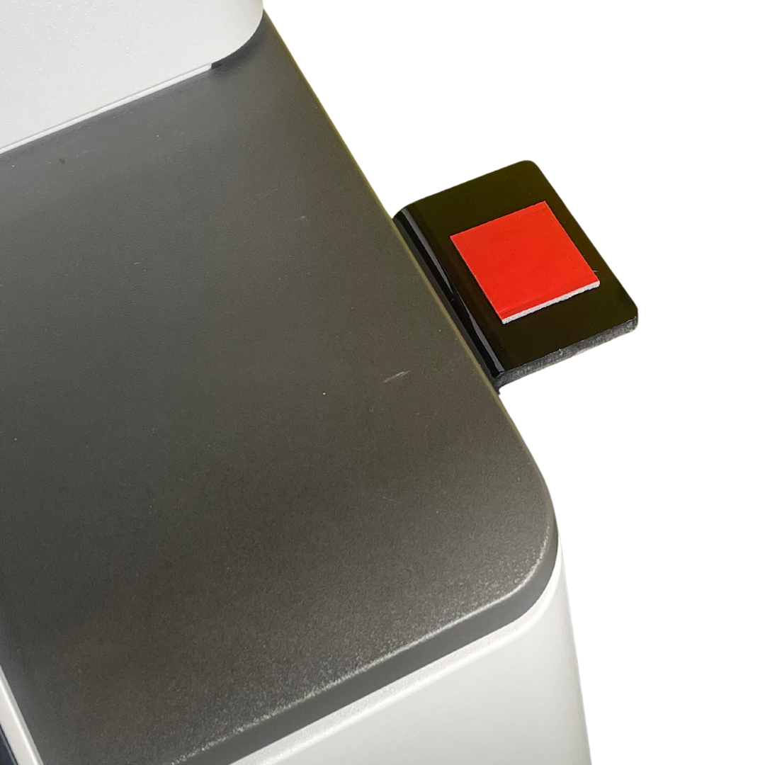 The mini plastic bracket can be attached to a flat surface with both adhesive pads and/or screws. Furthermore, depending on the RFID reader at hand, it could offer additional security for special applications.